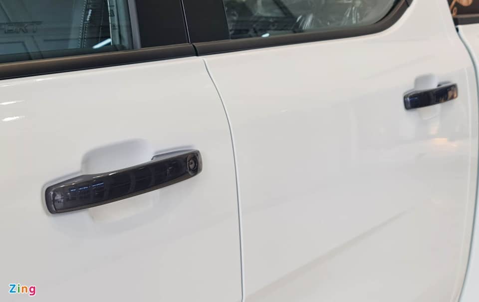 Tay nắm cửa trên Ranger Sport cũng được sơn đen, thay vì đồng màu thân xe như các phiên bản khác.
