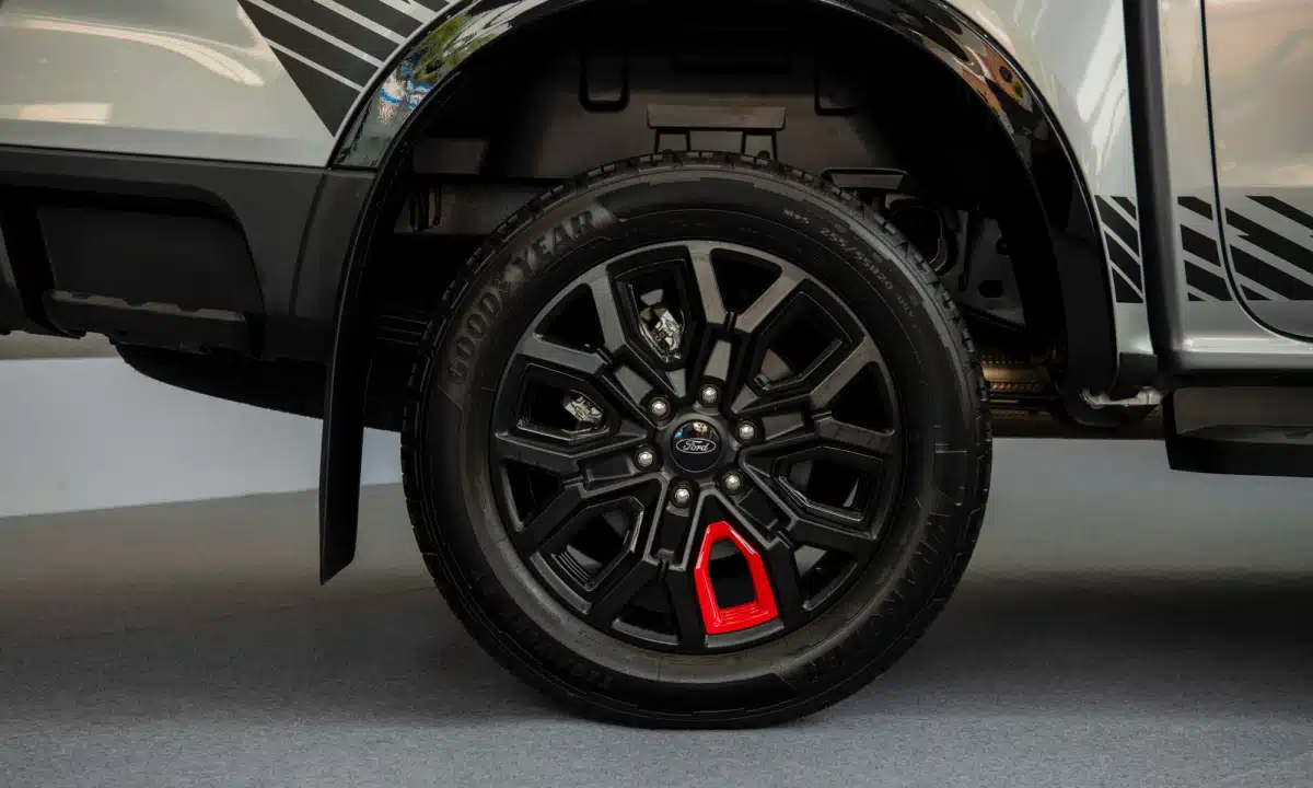 Thiết kế cơ bắp và thể thao của Ford Ranger 2025 được thể hiện rõ nhất ở vè ốp bánh xe vồng cong lên ôm trọn bánh xe lớn, giúp kích thước xe tăng thêm 50mm, tạo một vóc dáng vạm vỡ đầy ấn tượng.