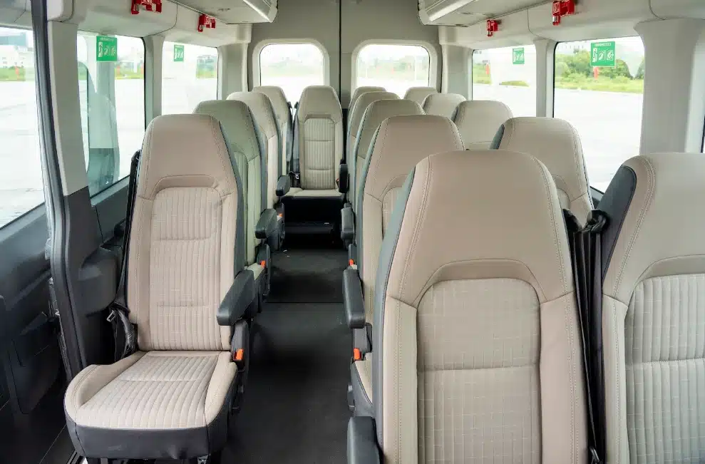 Ford bố trí ghế linh hoạt như đơn, kép, ba chỗ với tùy chọn gấp gọn cho khách hàng và hành lý. Không gian dưới ghế và hàng ghế cuối có thể gập gọn để chứa đồ. Các bản Premium thêm giá hành lý phía trên và cửa gió điều hòa cho từng vị trí ngồi, cổng sạc USB cho hàng ghế sau, hộc cốc.